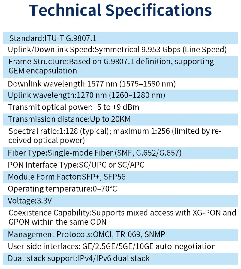 | Data Rate PON | 10G//10G |